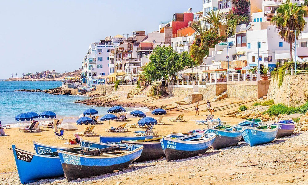 - Afternoon : Arrive in Agadir and check into your hotel. Visit Agadir Beach for a relaxing afternoon by the sea.