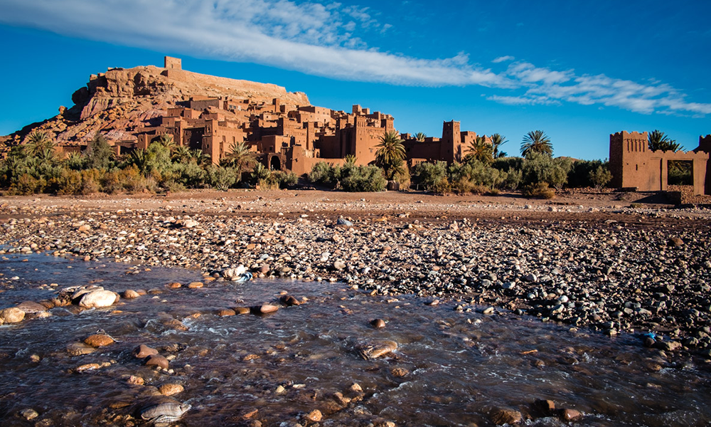 After breakfast, we will travel dad’s valley for another beautiful views of the mountains and windy roads, than drive in a road of 1000 kasbah to valley of rose Kallaa M’agouna that know as city of rose where we are going to discover about diff erent products that they makes from rose fl owers, and we will have lunch on this beautiful town, before we drive to ourzazate or Hollywood of Morocco where we are going to stop for pictures of a beautiful Kasbah of Taourirt , and also a wonderful studio of Oscar where they shot diff erent fi lms like gladiator and gym of thrones.. and our journey going to end in one of unesco world heritage sites Kasar ait banhadou, (check in to hotel) and have a walk to kasbah to discover this south architecture.. (dinner and overnight at hotel).